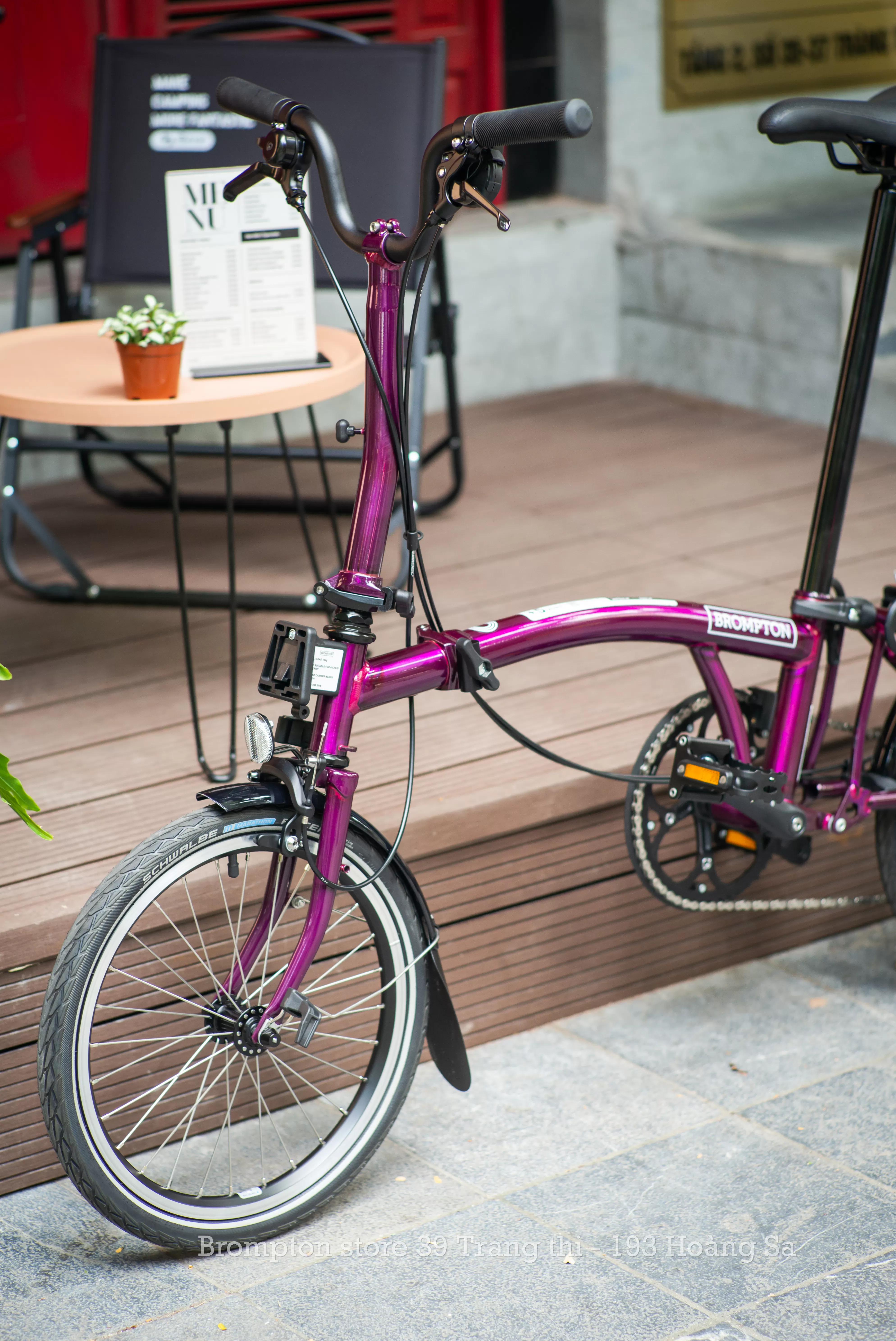 Các vật dụng trang bị theo xe: Chắn bùn trước – sau, phản quang trước-sau, gá treo túi Brompton phía trước