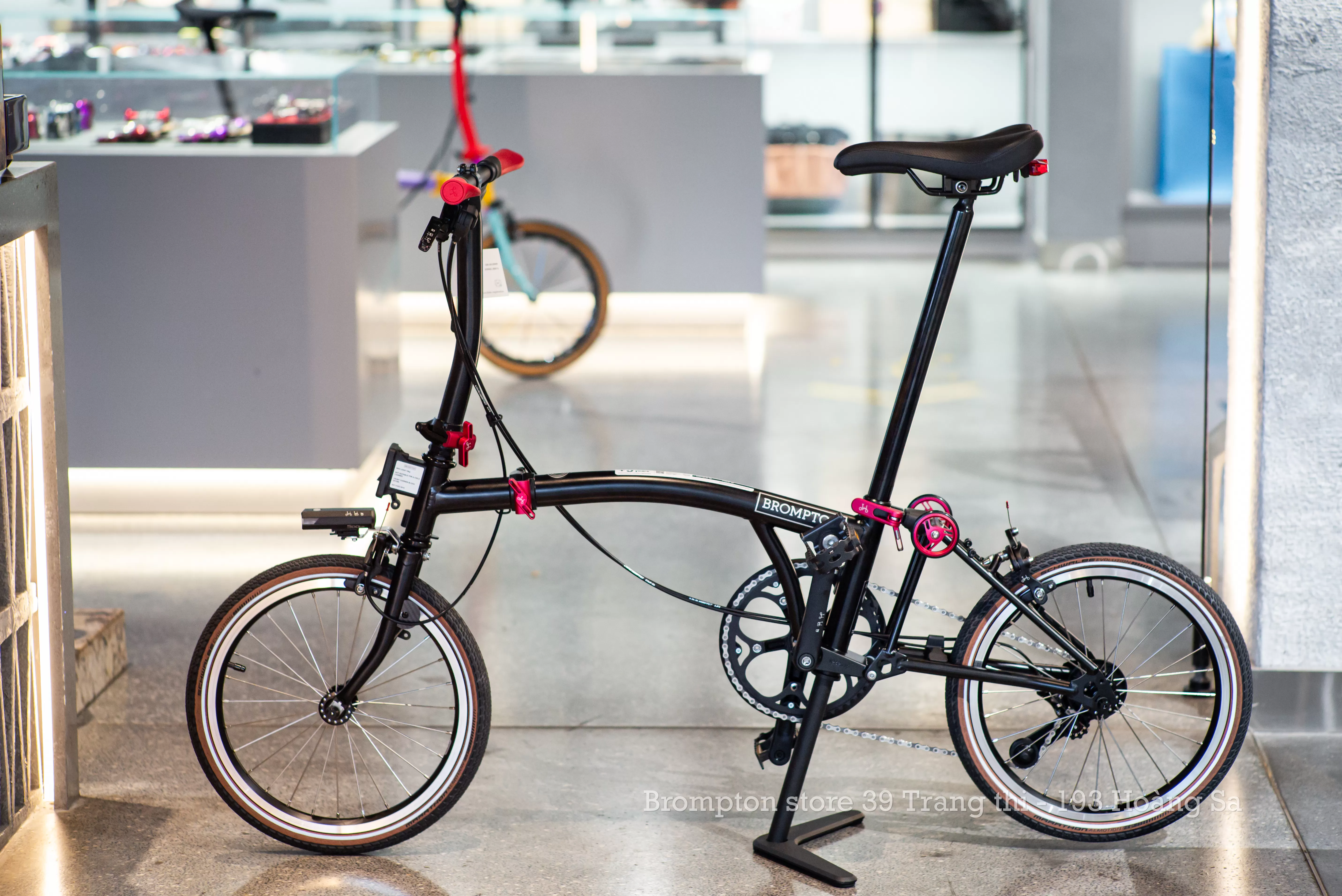 Các vật dụng trang bị theo xe: Chắn bùn trước – sau, phản quang trước-sau, gá treo túi Brompton phía trước