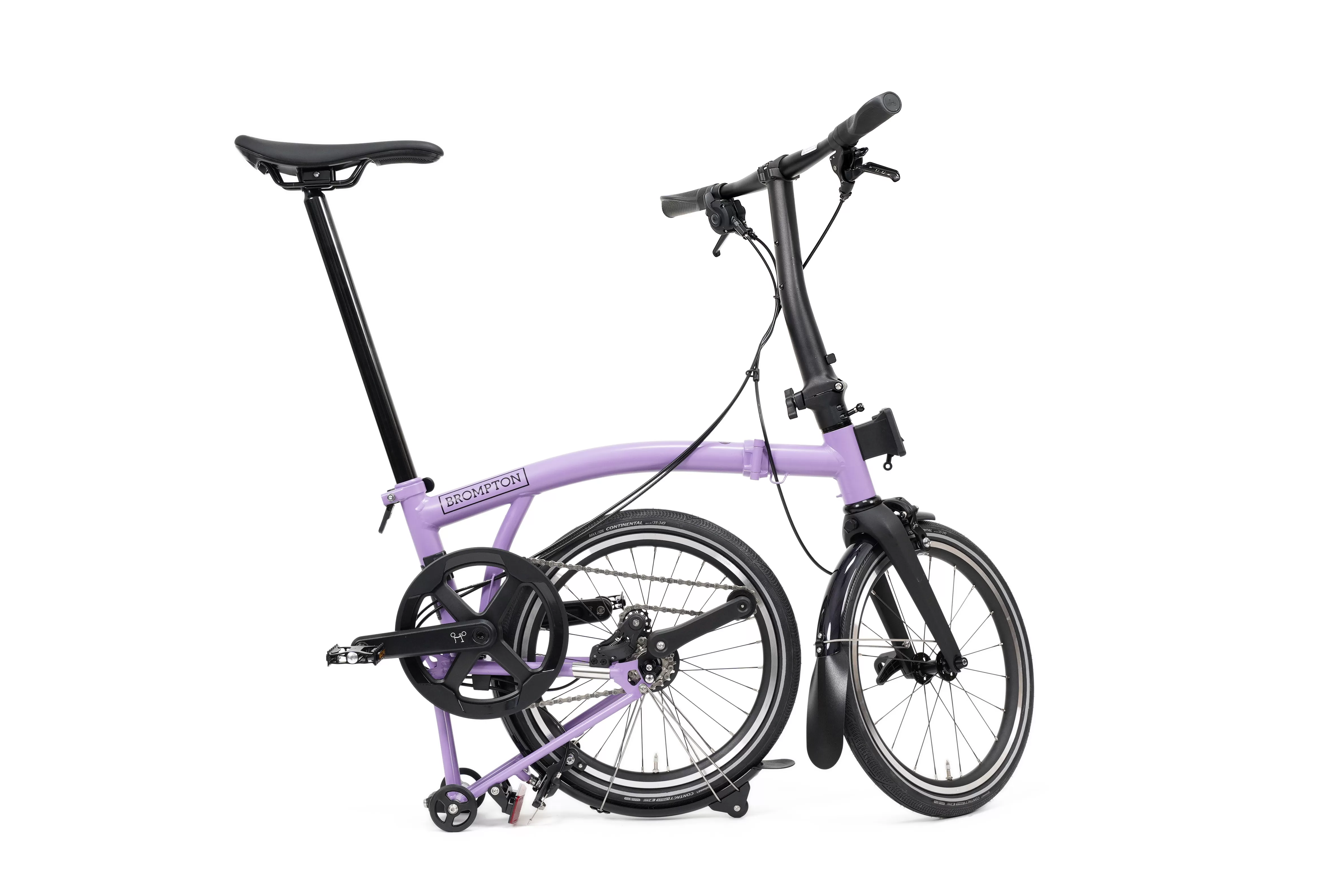 Các vật dụng trang bị theo xe: Chắn bùn trước – sau, phản quang trước-sau, gá treo túi Brompton phía trước